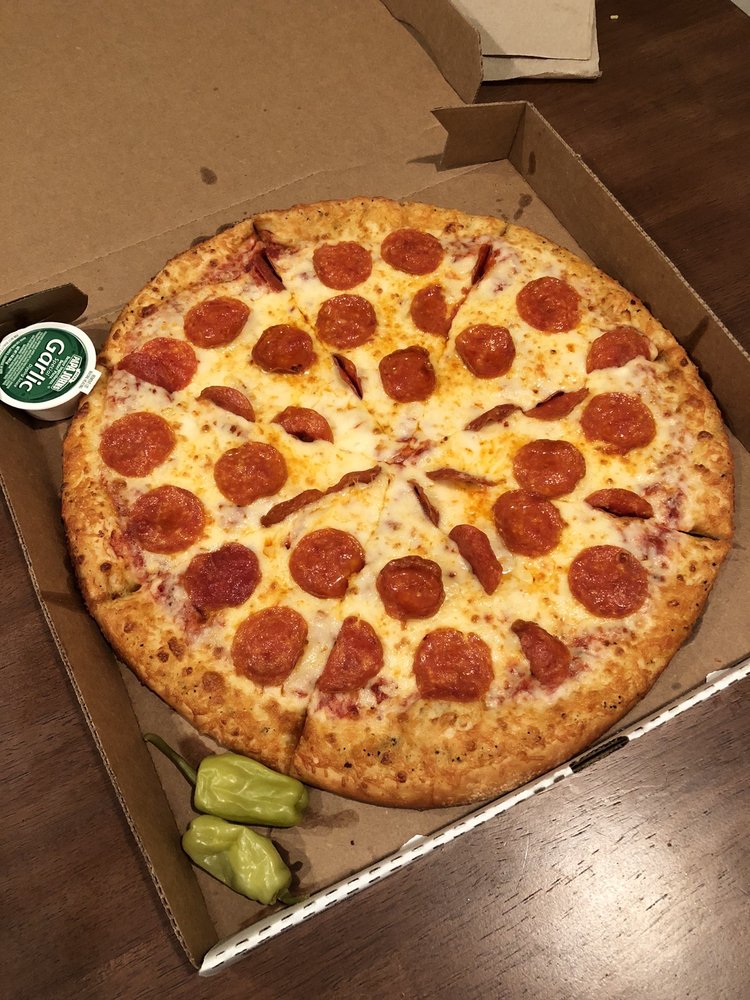 Your choice of crust covered with our signature pizza sauce, real cheese made from mozzarella, and pepperoni. With a pepperoni in almost every bite, it's one of our most popular pizzas.