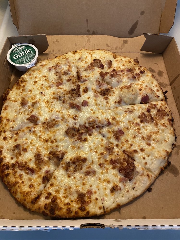 Get a taste of the tropics. This super delicious pizza is loaded with sweet, juicy pineapple tidbits, julienne-cut Canadian bacon, hickory-smoked bacon, a three-cheese blend, and real cheese made from mozzarella on our signature sauce and original fresh dough.